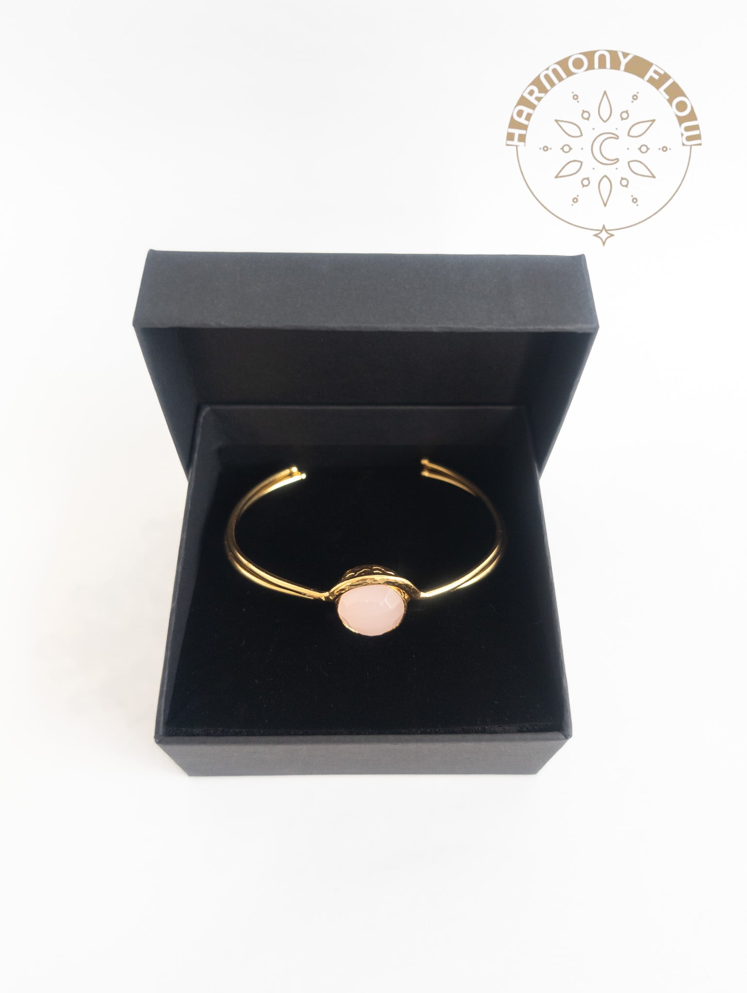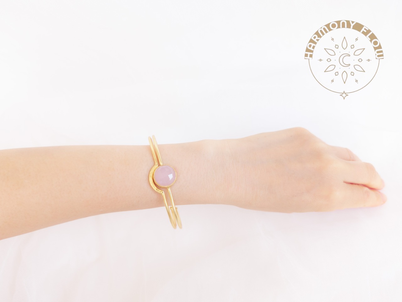 淡いピンクがやさしく輝くローズクォーツをあしらったバングル。