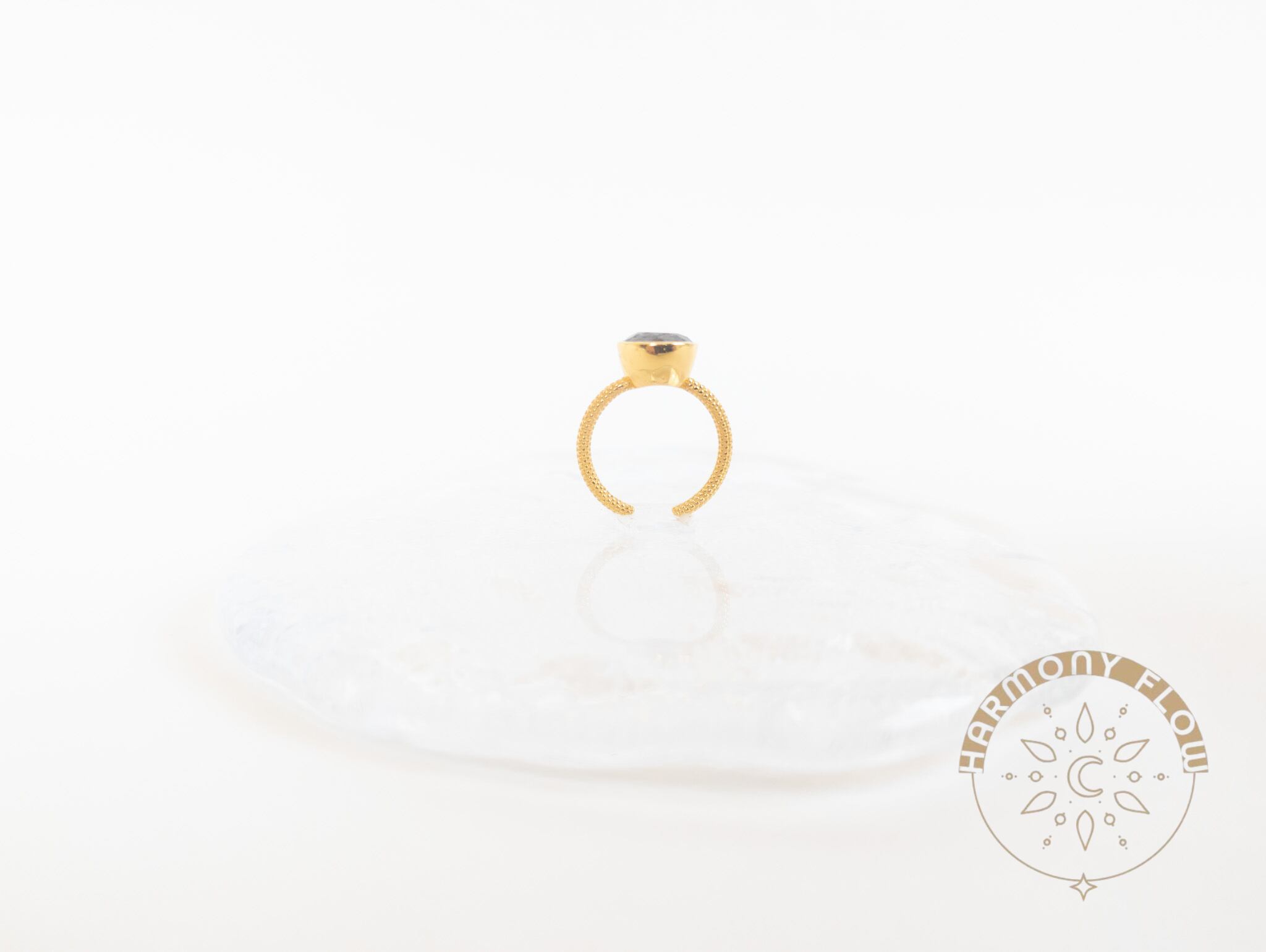 シルバー925をベースに、18Kゴールドでプレーティングを施した上質な仕立て。落ち着いた光沢が石の神秘的な表情を際立たせ、日常の装いに自然に溶け込みながらも確かな存在感を放ちます。