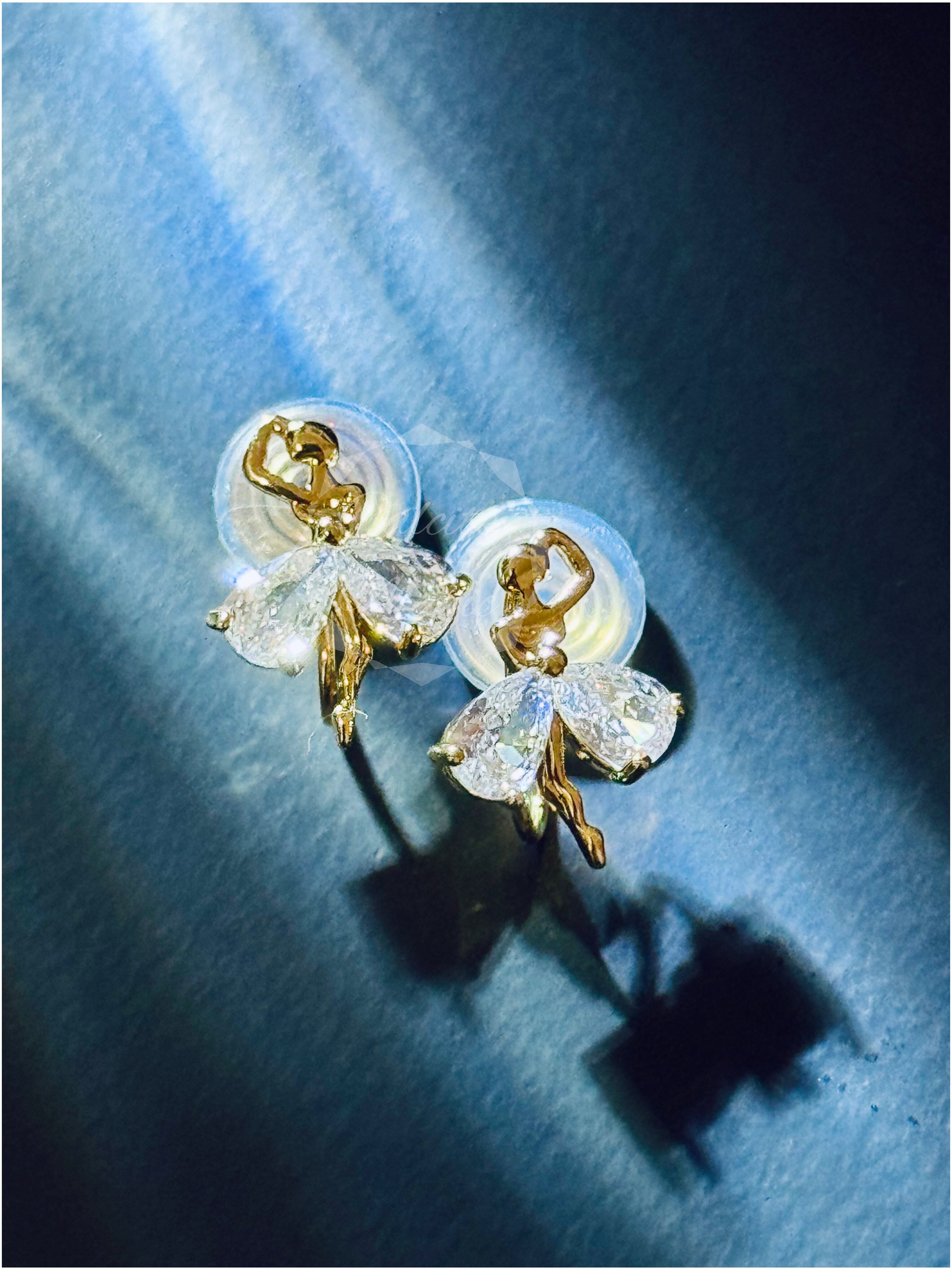 しずく型のキュービックジルコニアを2つ並べ、可憐なチュチュを表現しました。