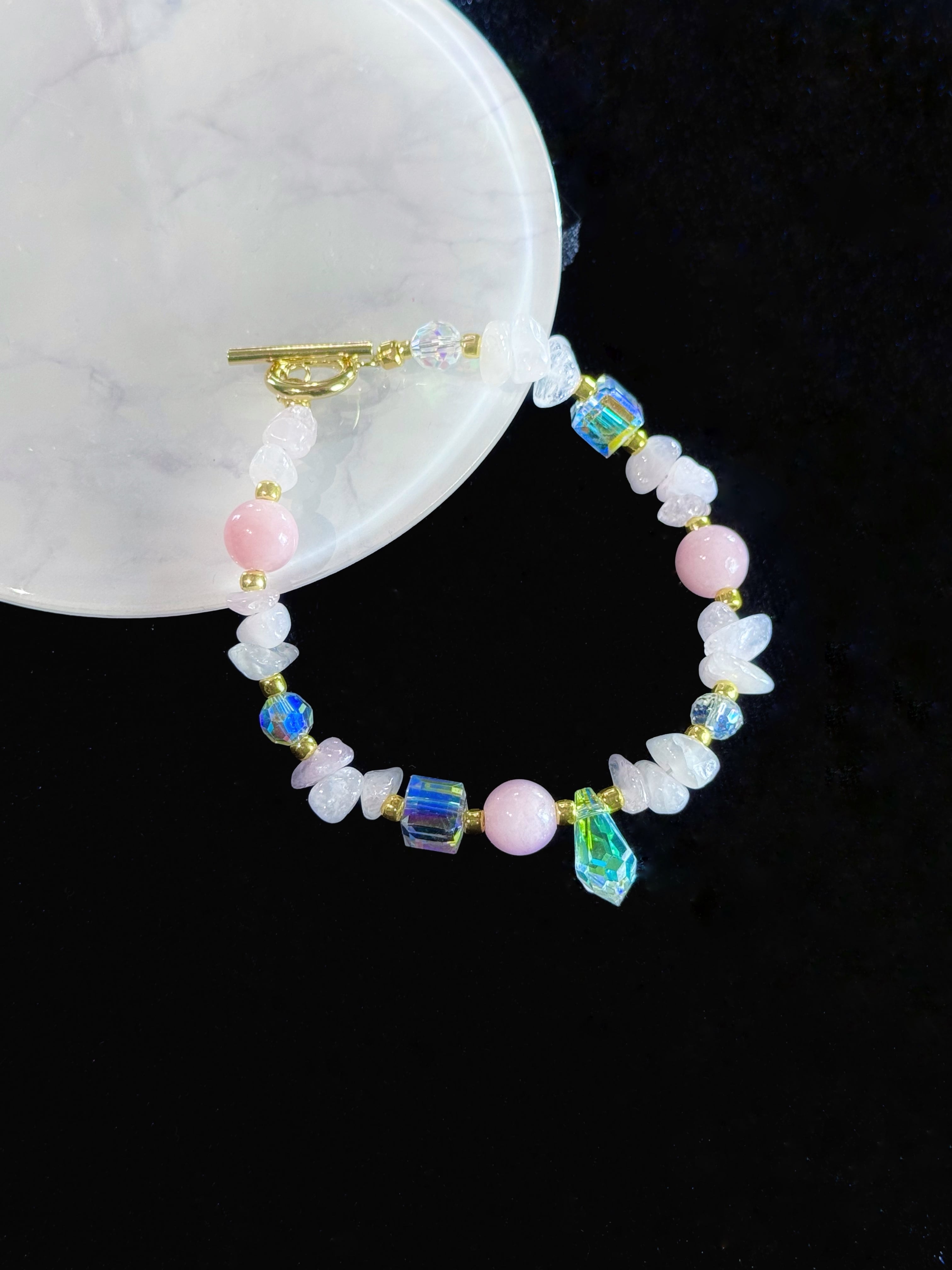 ローズクォーツ、ピンクメノウ、クリスタルを組み合わせ、