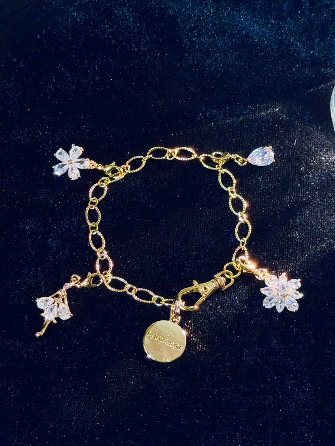 14Kゴールドプレーティングを施した真鍮に、高品質ジルコニアをセッティング。光を受けて繊細にきらめくチャームは、Éclat Chainとの組み合わせはもちろん、単品での使用や市販のアクセサリーにも簡単に取り付けられます。